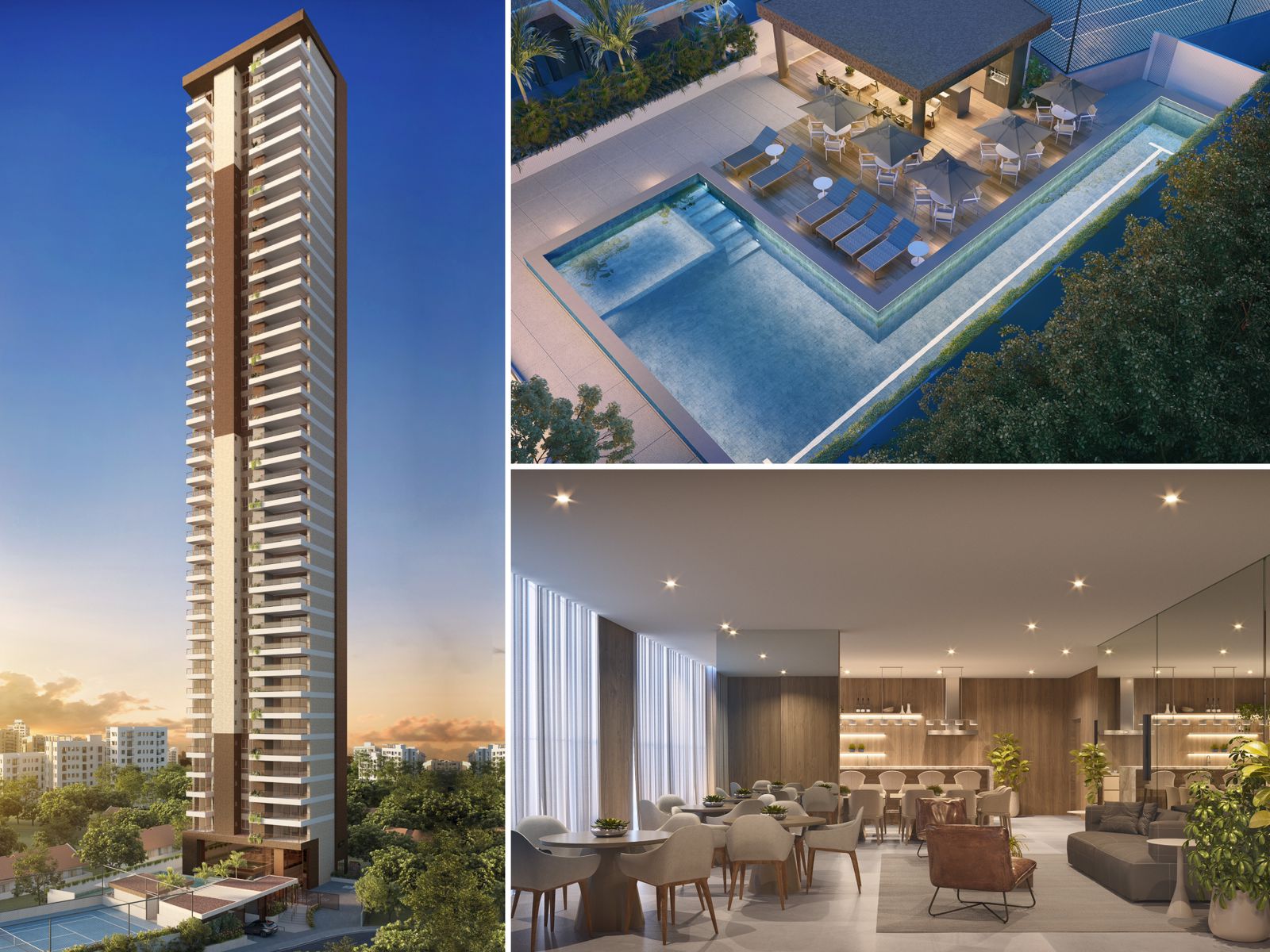 Piscina 3 ambientes com raia de 20m, deck grill, quadra de tênis oficial (piso Lisonda), academia, área infantil e parque integrados, lounge para vinhos, espaço para pets, sala de massagem, beauty space.