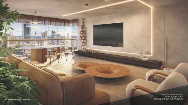 Torre única de 38 pavimentos, 1 apartamento por andar, 4 suítes, 210m² de área privativa, lavabo, 2 varandas, dependência completa, todos os quartos direcionados para a nascente, 3 vagas de garagem mais depósito, 1 vaga para carro elétrico por unidade, infraestrutura completa de segurança, projeto arquitetônico de Carlos Campelo.