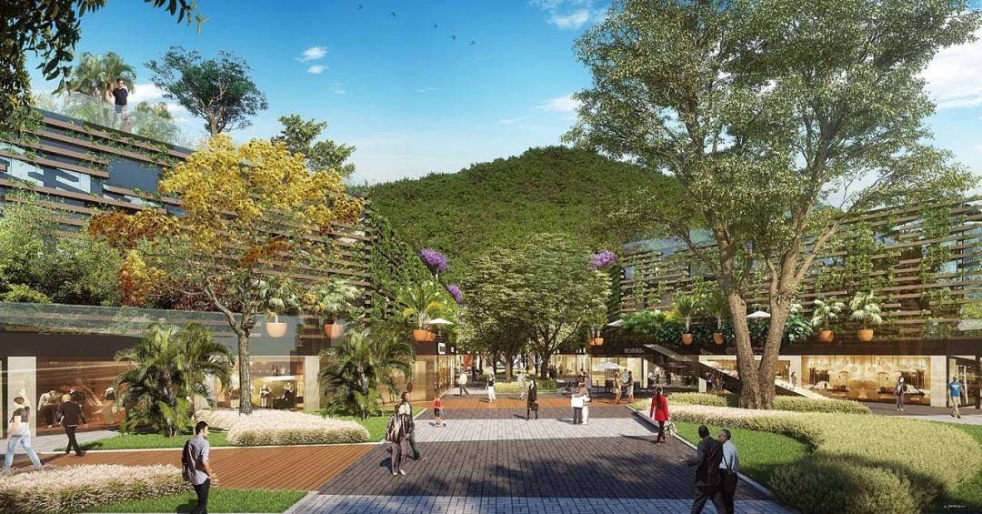 3 blocos residenciais, lojas, vagas de estacionamento, área de lazer completa no rooftop, integração com o meio ambiente, paisagismo Burle Marx, soluções sustentáveis e plantas inteligentes com varandas gourmet.